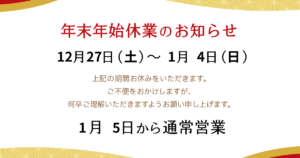 【年末年始休業期間】